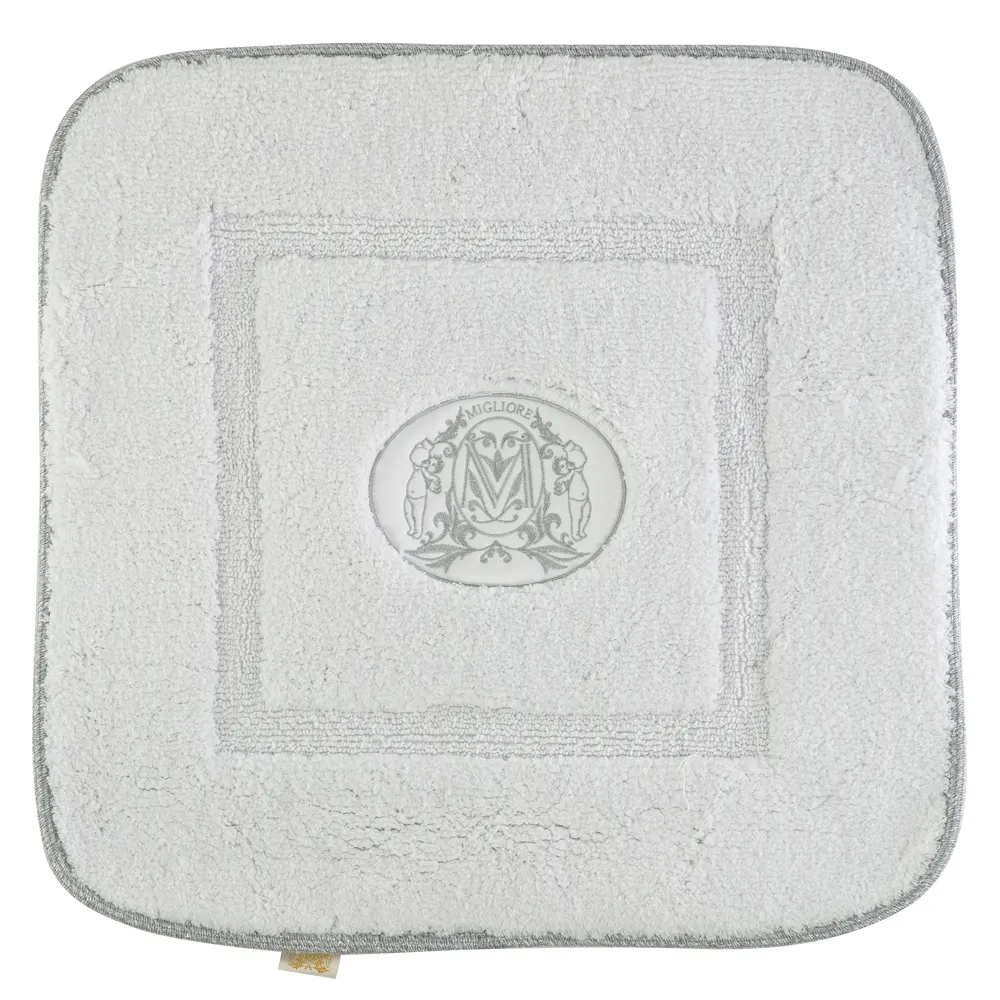 Коврик д/ванной комнаты 60х60 см., вышивка логотип MIGLIORE, белый, окантовка серебро арт-31926