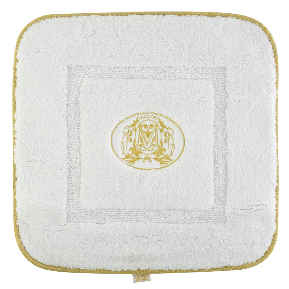Коврик д/ванной комнаты 60х60 см., вышивка логотип MIGLIORE, белый, окантовка золото арт-31927
