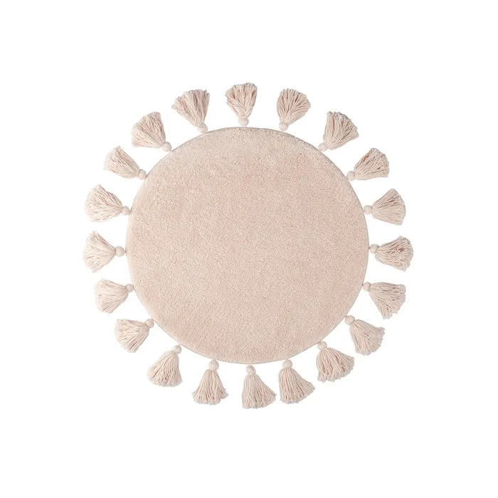 Мягкий круглый бежевый коврик для ванной диаметром 55 см с декоративными пушистыми кисточками, очень приятный на ощупь. Ворс из микрофибры отлично держит форму, легко чистится и быстро сохнет. Коврик подойдет для ванной и туалета, а также поможет создать уют в спальне или гостиной. • Коврик противоскользящий: основа из экологичной термопластичной резины (TPR) позволяет не скользить на гладком и влажном кафеле. Подходит для использования в помещениях с теплыми полами. • Благодаря современным влагостойким материалам и качественной обработке краев коврик не потеряет яркости красок, не обветшает и надолго останется привлекательным как в день покупки. • Рекомендуется ручная стирка при температуре до 40 градусов с жидким моющим средством; не сушить на батарее, избегать солнечных лучей. Гарантия на текстильные аксессуары IDDIS® – 1 год. (с) Авторский текст, октябрь 2023 г.