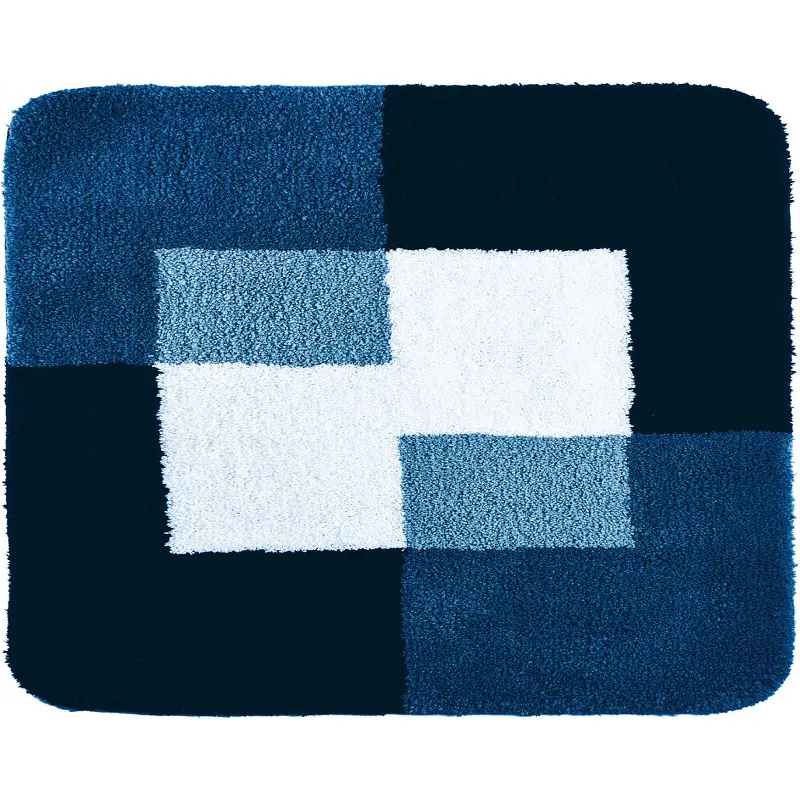 - Современный дизайн: Прямоугольная форма и синий цвет коврика прекрасно дополнят ванную комнату в современном стиле.