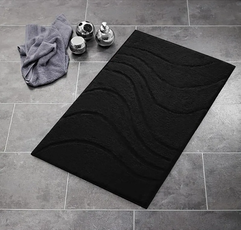 Коврик для ванной комнаты Ridder La Ola 55х50 729810.Удивительно мягкий, плюшевый и на латексной подложке, что делает этот коврик удобным в использовании. Стирать при щадящем режиме 30 градусов С, не подвергать химической чистке и не гладить. Можно сушить в сушильной машине.Характеристики: Цвет: черный. Материал: микрополиэстер. Подложка: латекс. Размеры (ШхГ): 550х500 мм. Высота ворса: 26 мм. Форма: прямоугольная. В комплекте поставки: Коврик для ванной комнаты.