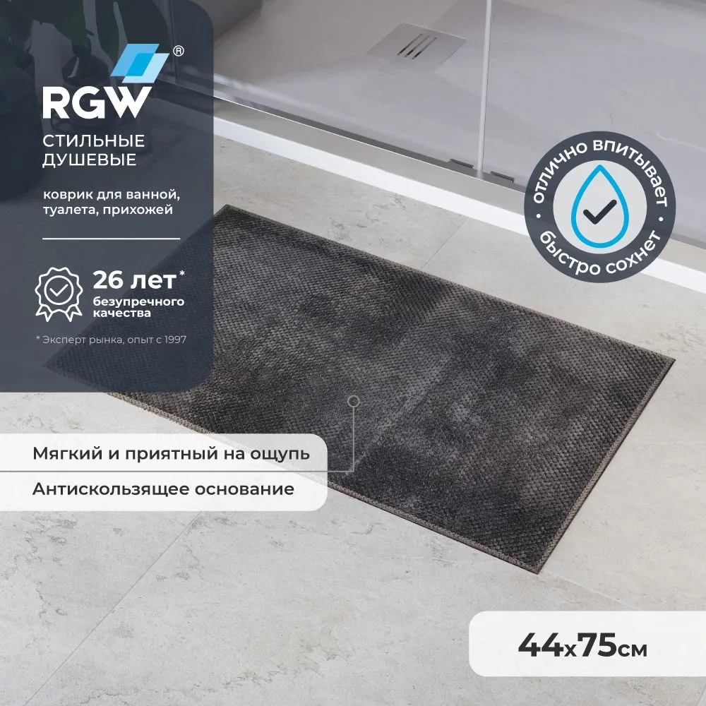 Коврик для ванной RGW BM-010 44*75/Серый — это надежный и стильный выбор для вашей ванной комнаты. Купить коврик для ванной можно прямо сейчас в нашем интернет-магазине.