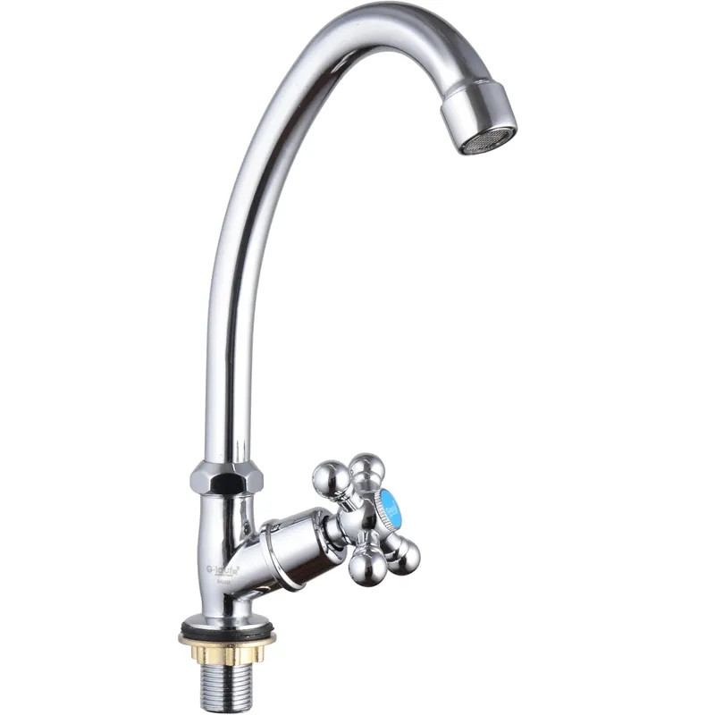 Кран для одного типа воды на кухонную мойку G-Lauf JMX14-A605. Цвет: хром.Сочетает в себе современные технологии и универсальный современный дизайн. Превосходно дополнит интерьер кухни в квартире или на даче. Изготовлен из качественного цинка по технологии литья под давлением. Это обеспечивает равномерную толщину стенок крана, сводит к минимуму риск образования внутренней коррозии. Полировка и последующая гальванизация крана делает его поверхность максимально крепкой, защищает изделие от воздействий внешней среды и механических повреждений. Керамическая кран-букса обеспечивает точную настройку напора воды. Излив с поворотом на 360 градусов. Аэратор из пластика с функцией легкой очистки. Стандарт подводки: G 1/2, гибкая. Монтаж: на мойку, на 1 отверстие. В комплекте поставки: кран для кухни, гибкая подводка, крепление.