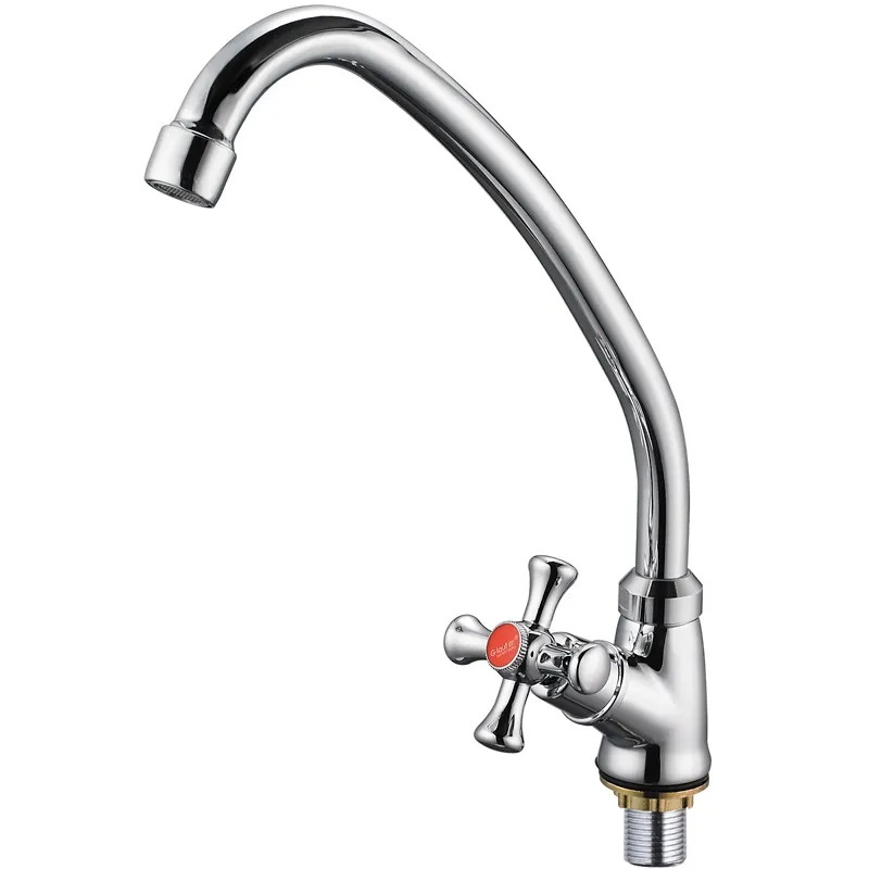 Кран для одного типа воды на кухонную мойку G-Lauf QTZ14-A827. Цвет: хром.Сочетает в себе современные технологии и универсальный современный дизайн. Превосходно дополнит интерьер кухни в квартире или на даче. Изготовлен из качественного цинка по технологии литья под давлением. Это обеспечивает равномерную толщину стенок крана, сводит к минимуму риск образования внутренней коррозии. Полировка и последующая гальванизация крана делает его поверхность максимально крепкой, защищает изделие от воздействий внешней среды и механических повреждений. Керамическая кран-букса обеспечивает точную настройку напора воды. Излив с поворотом на 360 градусов. Аэратор из пластика с функцией легкой очистки. Стандарт подводки: G 1/2, гибкая. Монтаж: на мойку, на 1 отверстие. В комплекте поставки: кран для кухни, гибкая подводка, крепление.
