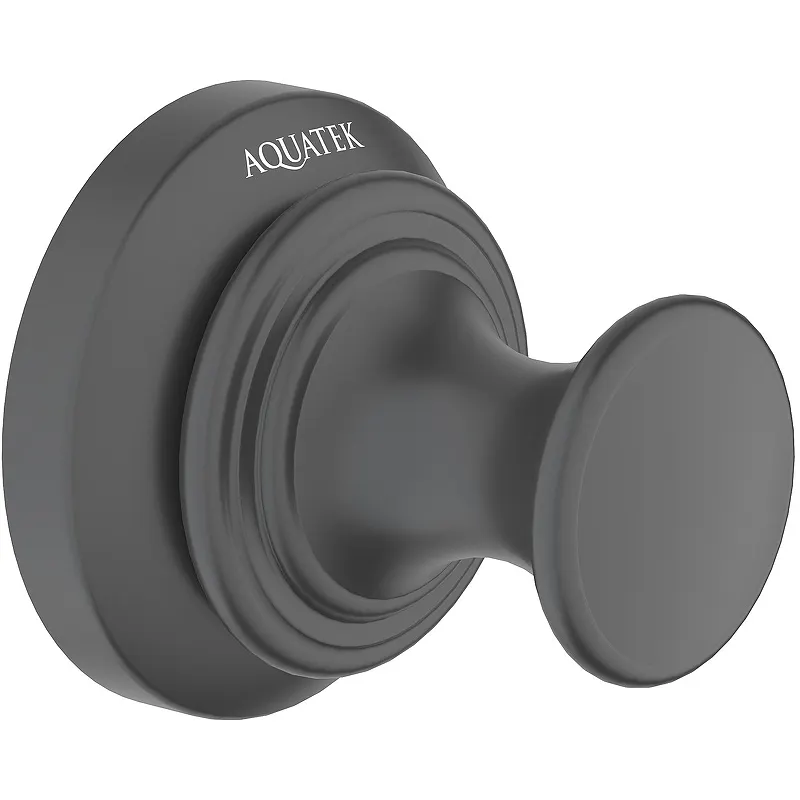 Крючок Aquatek Классик AQ4501MB.Характеристики: Цвет: черный матовый. Материал: латунь. Габариты (ШхВхД): 50х50х48 мм. Метод крепления: шурупы. Монтаж: на стену. В комплекте поставки: Крючок. Монтажный комплект.