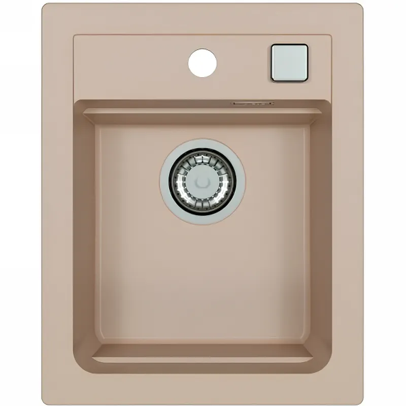 - Материал: искусственный гранит — обеспечивает долговечность и устойчивость к царапинам, что необходимо для кухонной мойки.