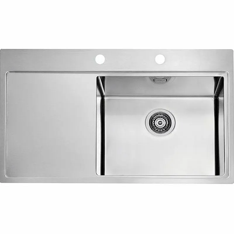 - Современный дизайн: прямоугольная форма с крылом делает мойку стильной и удобной в использовании.