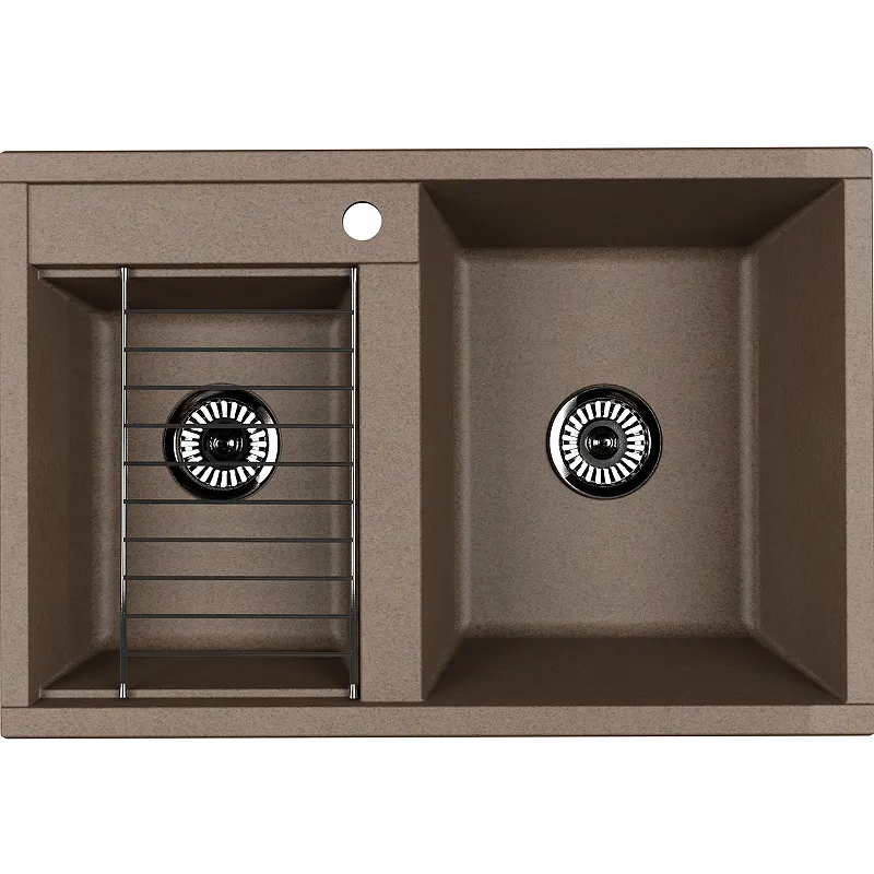 - Две чаши для удобства работы: Данная кухонная мойка с двумя чашами обеспечивает комфортное использование, позволяя выполнять несколько задач одновременно.