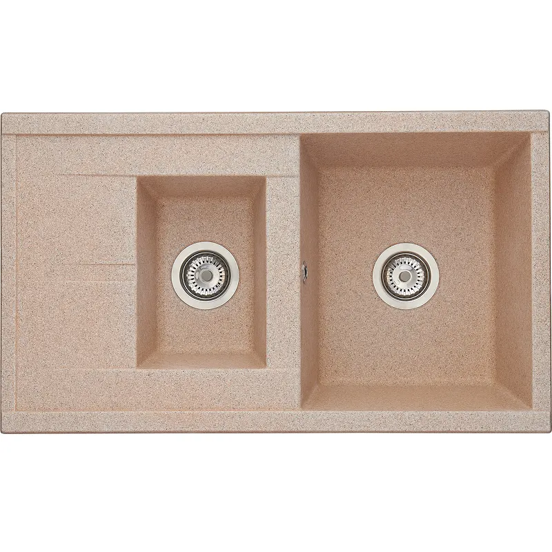 - Две чаши для максимального удобства: Данная кухонная мойка включает основную и дополнительную чаши, что повышает функциональность.