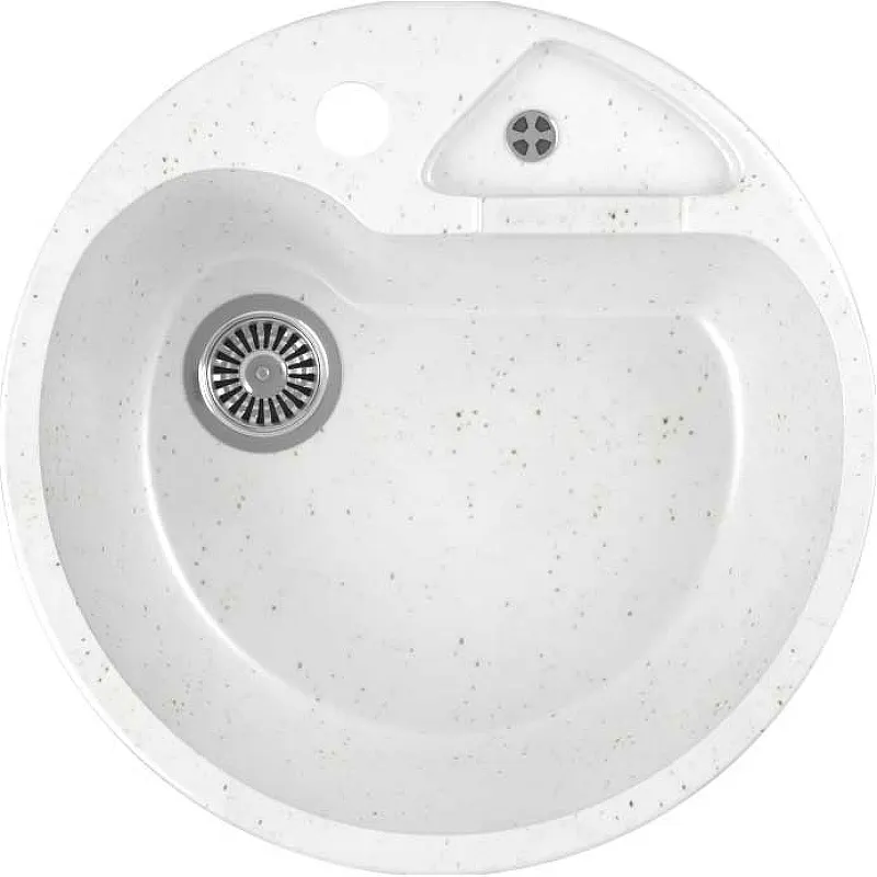 Кухонная мойка Domaci Бьелла DMC-08K GWS-08K-331 Белая — идеальный выбор для современных интерьеров. Изготовленная из искусственного мрамора, мойка обладает матовой поверхностью и круглой формой, что добавляет эстетики и функциональности в кухонное пространство. Встраиваемая сверху конструкция и наличие одного отверстия под смеситель делают установку простой и удобной.