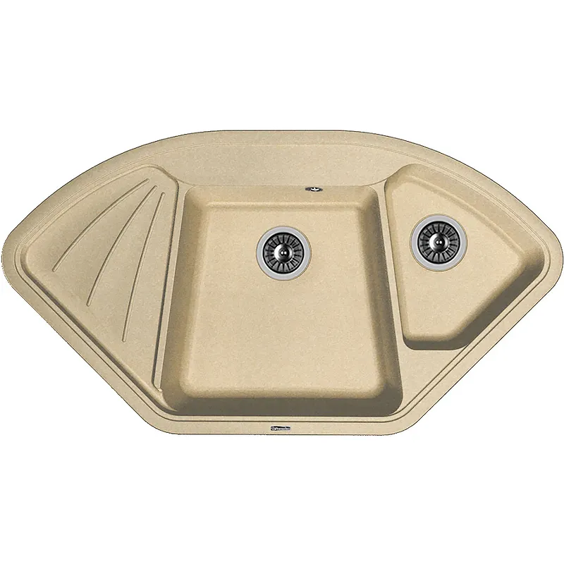 - Угловая мойка с двумя чашами: оптимальное использование пространства и удобство в эксплуатации.