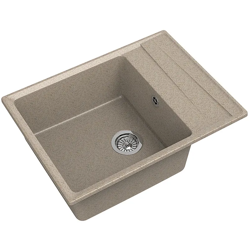 - Современный дизайн: Прямоугольная форма и песочный цвет делают мойку стильным дополнением к любой кухне.