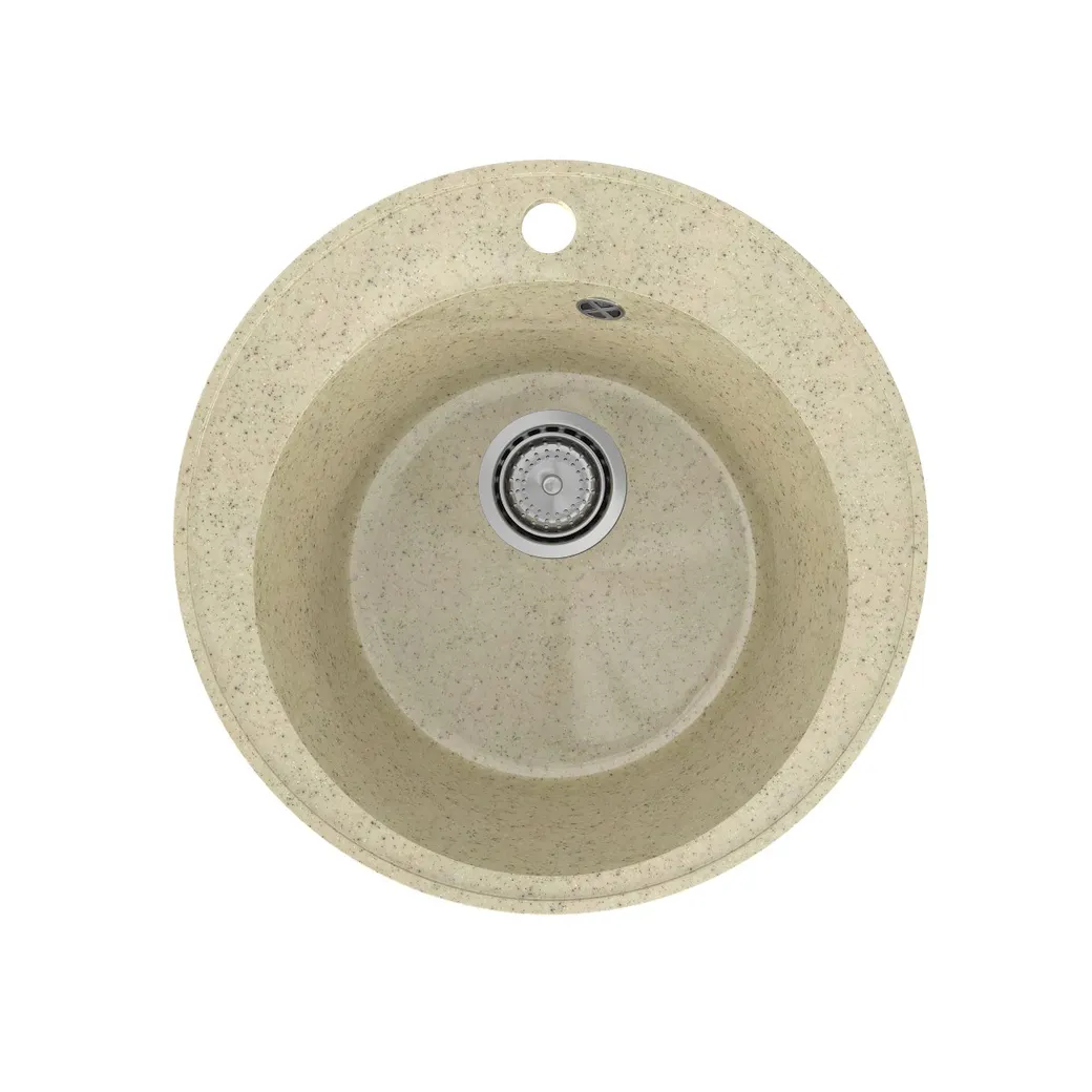 Кухонная мойка с отверстием под смеситель Maretti Kitchen 475 круглой формы и компактных размеров подойдёт для небольшой кухни. Она сделана из искусственного камня, который представляет собой композит натурального мрамора и связующих смол. Благодаря этому материалу, шум от падающей воды становится значительно тише. Поверхность мойки покрыта специальным составом — гелькоутом, который защищает её от грязи и царапин. Это упрощает уход за мойкой. Дизайн мойки современный и минималистичный. Её можно установить в шкаф шириной от 45 см, что позволяет монтировать мойку практически в любую мебельную базу. Это даёт широкие возможности для проектирования кухни. Гарантия на мойку составляет 1 год. При правильном уходе мойка прослужит более 10 лет.