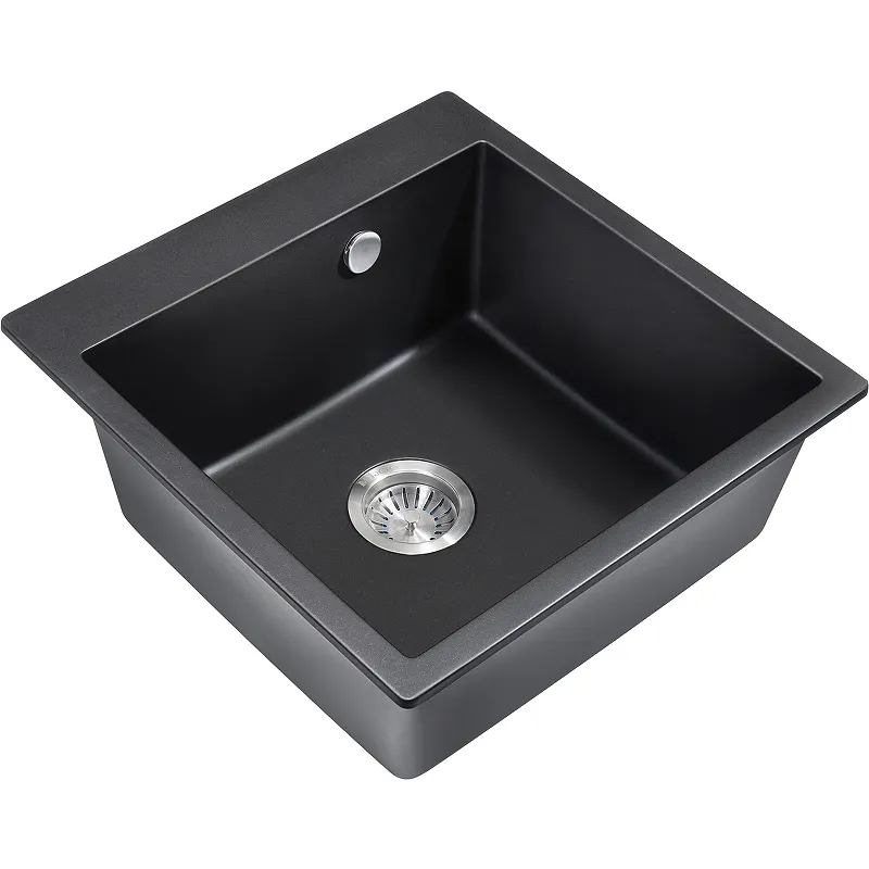 - Современный дизайн: Черный матовый цвет и отсутствие крыла делают мойку стильным элементом в интерьере.