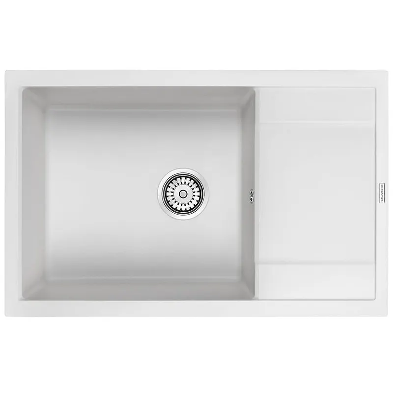 Кухонная мойка Paulmark Flugen 60 PM317850-WH идеально подходит для современных кухонь. Изготовленная из кварца, она обладает высокой прочностью и термоустойчивостью. Врезная сверху мойка отличается симметричным дизайном, что позволяет расположить крыло как справа, так и слева. Белая кварцевая мойка станет стильным акцентом на вашей кухне, обеспечивая безопасность благодаря инертности материала.