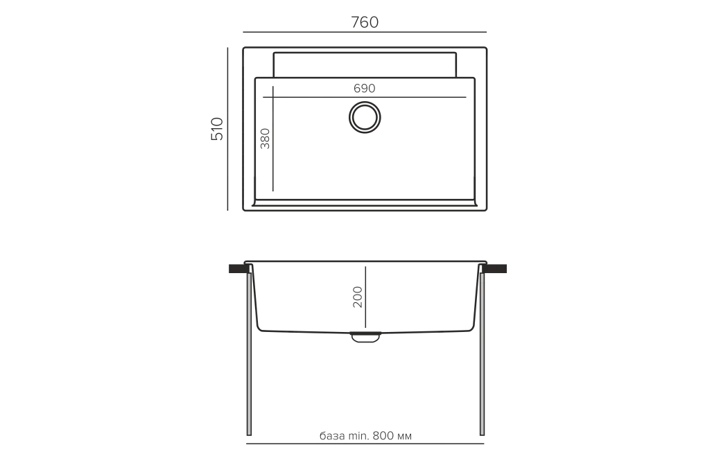 Технические характеристики кухонной мойки Polygran ARGO-760 (№14 Серый)