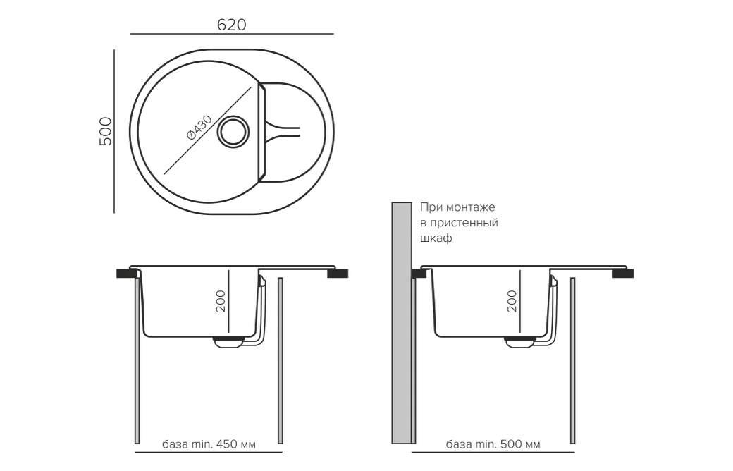 Технические характеристики кухонной мойки Polygran ATOL-620