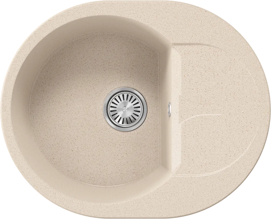 - Уникальный дизайн: Овальная форма и кремовый цвет мойки легко вписываются в любой кухонный гарнитур.