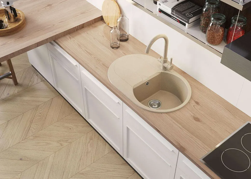 - Высокая прочность и долговечность: Изготовлена из литых композитов, мойка обладает высокой устойчивостью к температурным колебаниям, что делает её надежным выбором для любой кухни.