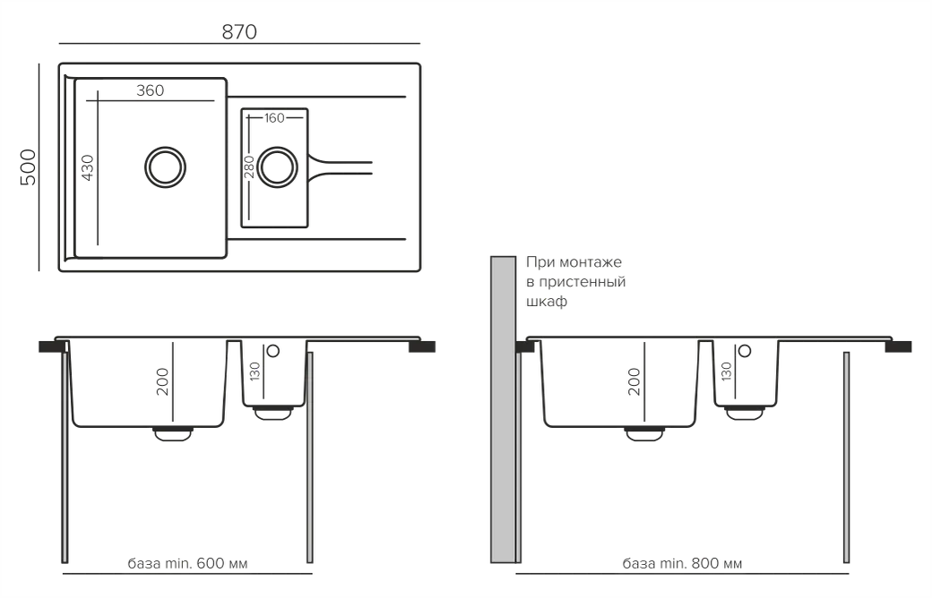 Технические характеристики кухонной мойки Polygran BRIG-870