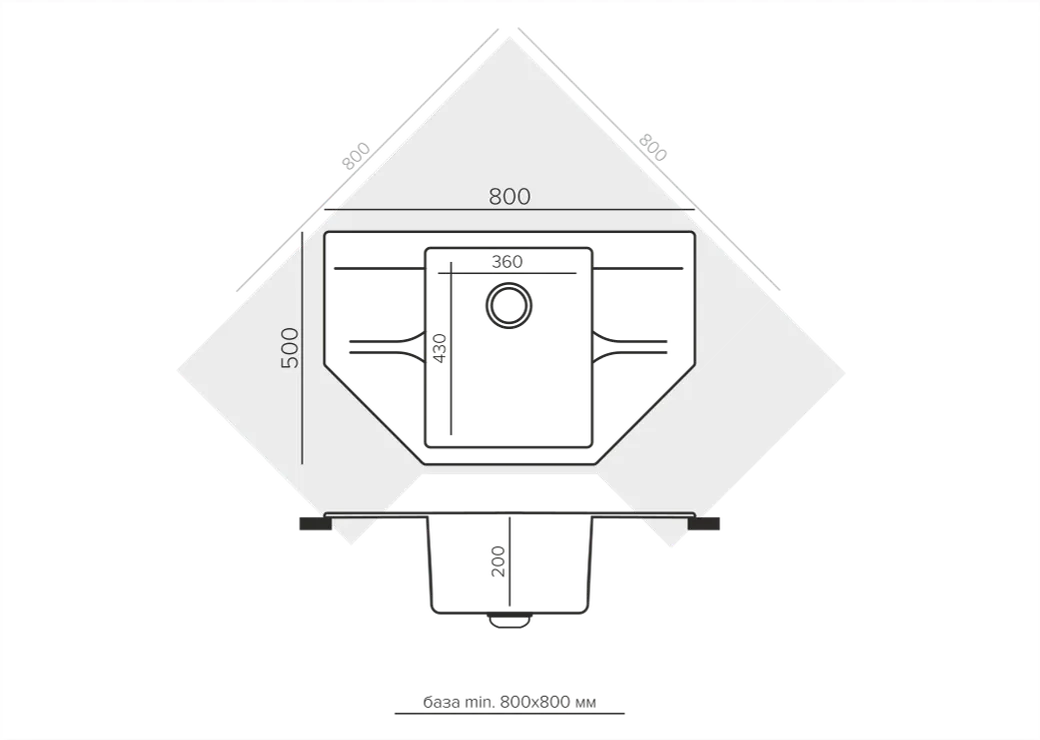 Технические характеристики кухонной мойки Polygran RIFF-800 (№36 Белый Хлопок)