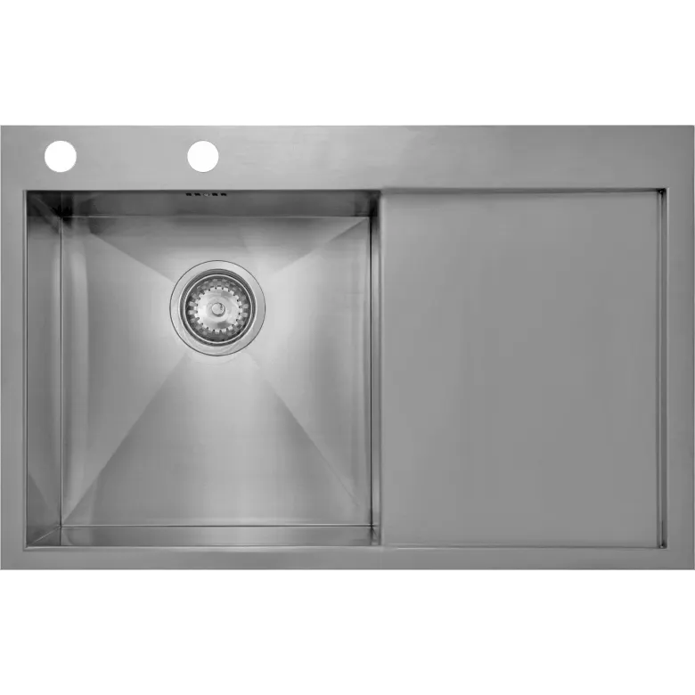 - Практичная конструкция: Правостороннее крыло и гладкая сатинированная поверхность делают мойку стильной и функциональной.