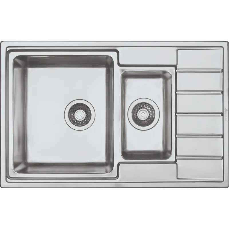 - Нержавеющая сталь мойки обеспечивает долговечность и устойчивость к повреждениям, сохраняя эстетичный вид на долгие годы.