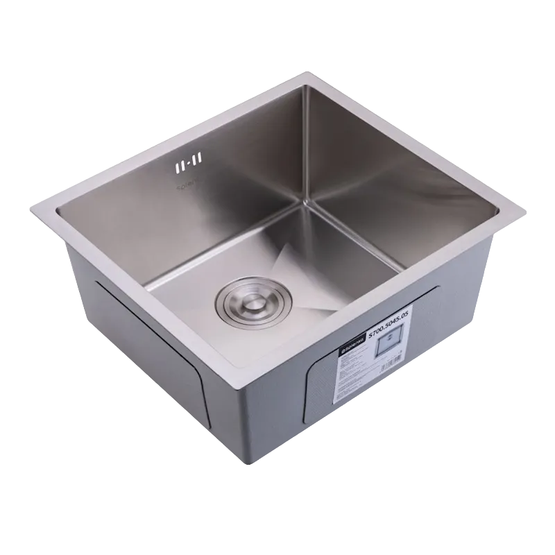 Кухонная мойка Splenka S700.5045.05, сатин. Размер - 500*440*220мм. Кухонные мойки Splenka отличаются практичностью и современным дизайном. Прямоугольные и квадратные раковины для кухни из нержавейки станут идеальным решением для любой кухни. Нержавеющая врезная мойка - отличный выбор для тех, кто ценит качество и долговечность. Изготовлена из качественной нержавеющей стали, которая не боится ни бытовой химии, ни царапин. Металлическая раковина для кухни добавит вашей кухне современности и функциональности. Удобный универсальный монтаж на ваш выбор: врезным способом, поверх столешницы или подстольный. Комплектующие - сифон с выходом для подключения посудомоечной машины и фильтра для питьевой воды, крепление. Толщина стали: верх - 3 мм / чаша - 0.6 мм
