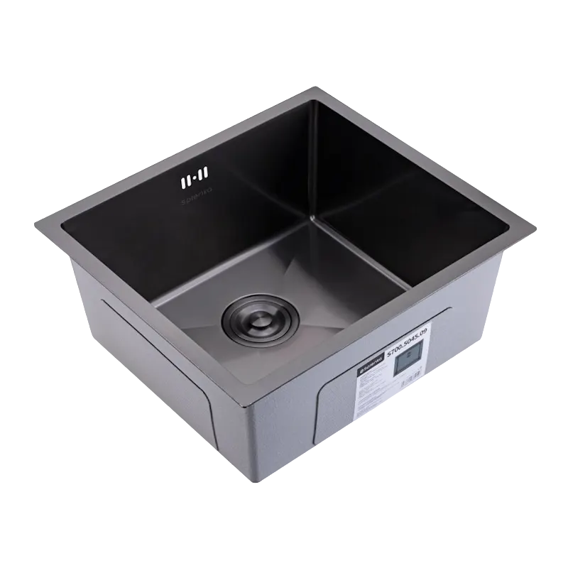 Кухонная мойка Splenka S700.5045.09, графит. Размер - 500*440*220мм. Кухонные мойки Splenka отличаются практичностью и современным дизайном. Прямоугольные и квадратные раковины для кухни из нержавейки станут идеальным решением для любой кухни. Нержавеющая врезная мойка - отличный выбор для тех, кто ценит качество и долговечность. Изготовлена из качественной нержавеющей стали, которая не боится ни бытовой химии, ни царапин. Металлическая раковина для кухни добавит вашей кухне современности и функциональности. Удобный универсальный монтаж на ваш выбор: врезным способом, поверх столешницы или подстольный. Комплектующие - сифон с выходом для подключения посудомоечной машины и фильтра для питьевой воды, крепление. Толщина стали: верх - 3 мм / чаша - 0.6 мм