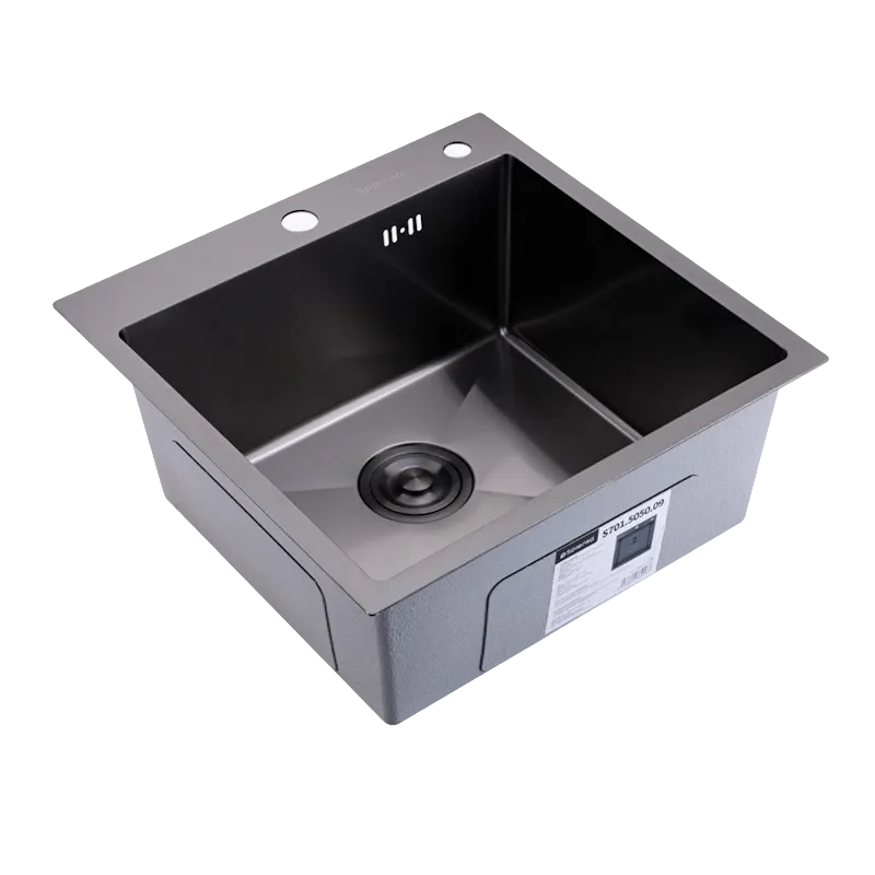 Кухонная мойка Splenka S701.5050.09, графит. Размер - 500*500*220мм. Кухонные мойки Splenka отличаются практичностью и современным дизайном. Прямоугольные и квадратные раковины для кухни из нержавейки станут идеальным решением для любой кухни. Нержавеющая врезная мойка - отличный выбор для тех, кто ценит качество и долговечность. Изготовлена из качественной нержавеющей стали, которая не боится ни бытовой химии, ни царапин. Металлическая раковина для кухни добавит вашей кухне современности и функциональности. Удобный универсальный монтаж на ваш выбор: врезным способом, поверх столешницы или подстольный. Комплектующие - сифон с выходом для подключения посудомоечной машины и фильтра для питьевой воды, крепление. Толщина стали: верх - 3 мм / чаша - 0.6 мм