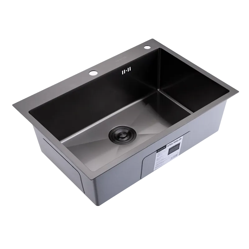 Кухонная мойка Splenka S703.7050.09, графит. Размер - 700*500*220мм. Кухонные мойки Splenka отличаются практичностью и современным дизайном. Прямоугольные и квадратные раковины для кухни из нержавейки станут идеальным решением для любой кухни. Нержавеющая врезная мойка - отличный выбор для тех, кто ценит качество и долговечность. Изготовлена из качественной нержавеющей стали, которая не боится ни бытовой химии, ни царапин. Металлическая раковина для кухни добавит вашей кухне современности и функциональности. Удобный универсальный монтаж на ваш выбор: врезным способом, поверх столешницы или подстольный. Комплектующие - сифон с выходом для подключения посудомоечной машины и фильтра для питьевой воды, крепление. Толщина стали: верх - 3 мм / чаша - 0.6 мм