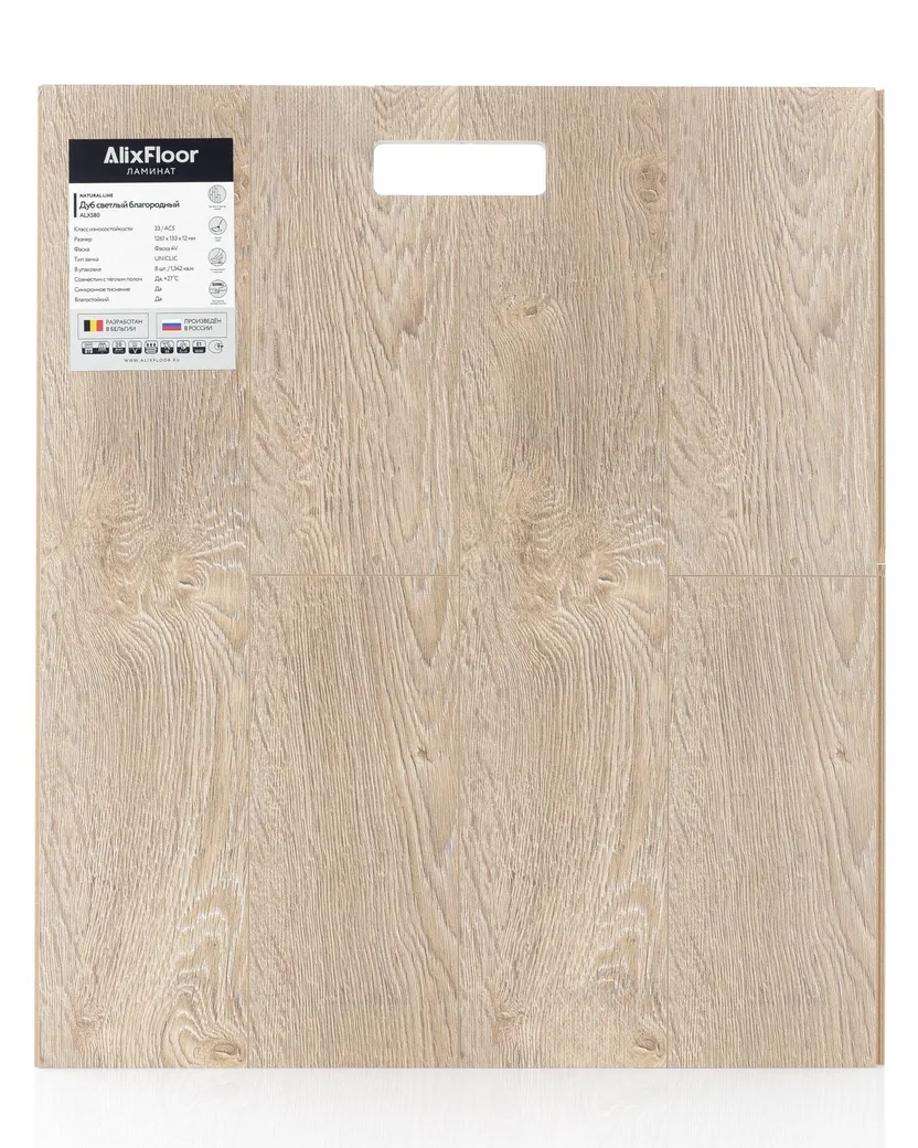 Ламинат AlixFloor Natural Line ALX580 Дуб светлый благородный 1261х133х12 мм — идеальное решение для создания уютной и стильной обстановки в вашем доме. Этот ламинат под дерево светло-коричневого цвета подходит для напольного покрытия в гостиной, прихожей и детской комнате. Влагостойкая HDF-панель обеспечивает долговечность и надежность.