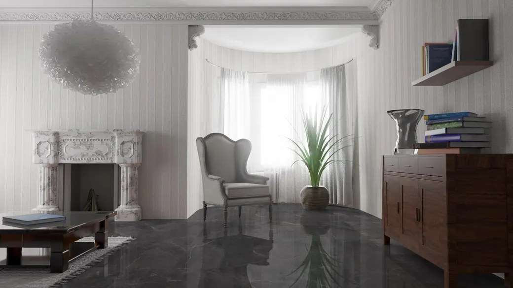 - Ламинат под плитку с мраморным дизайном придаёт вашему полу роскошный вид.
