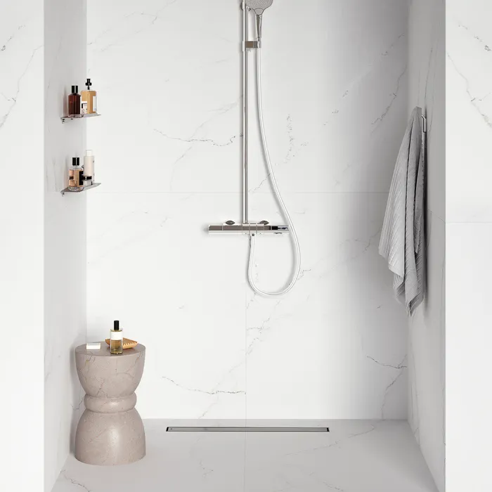 Душевой лоток IDDIS® с двусторонней решеткой, горизонтальным выпуском и сифоном 360° предназначен для отведения воды в канализацию из зоны принятия душа. Он заменит традиционные поддоны с бортиками, предлагая универсальный дизайн решетки и возможности для создания стильного интерьера ванной комнаты. Длина решетки — 700 мм; подходит для плитки толщиной до 12 мм. Цвет – хром. • 2 варианта установки: глухая заглушка и возможность облицовки решетки декоративной плиткой. • Благодаря поворотному механизму сифона, его можно установить в удобном месте, независимо от того, где находится подключение к канализации. • Высокая пропускная способность — 42 л/мин. • Легко очищается: удобно разобрать и промыть. • Оснащен сухим затвором, защищающим от неприятного запаха даже после испарения воды в сифоне. • Изготовлен из толстой высококачественной нержавеющей стали AISI 304, обеспечивающей долговечность, надежность и безопасность. • Регулируемые опоры позволяют адаптировать лоток по высоте даже при различном уровне пола по бокам лотка. • В комплекте все необходимое для монтажа: гидрополотно с вырезом под размеры лотка, переходник 40/50, фильтр для волос и крючок для извлечения сетки. Покрытие устойчиво к коррозии, появлению царапин, сколов и потускнению. На протяжении многих лет он будет выглядеть как новый. Гарантия на душевые лотки IDDIS® – 10 лет. (с) Авторский текст, март 2025 г.