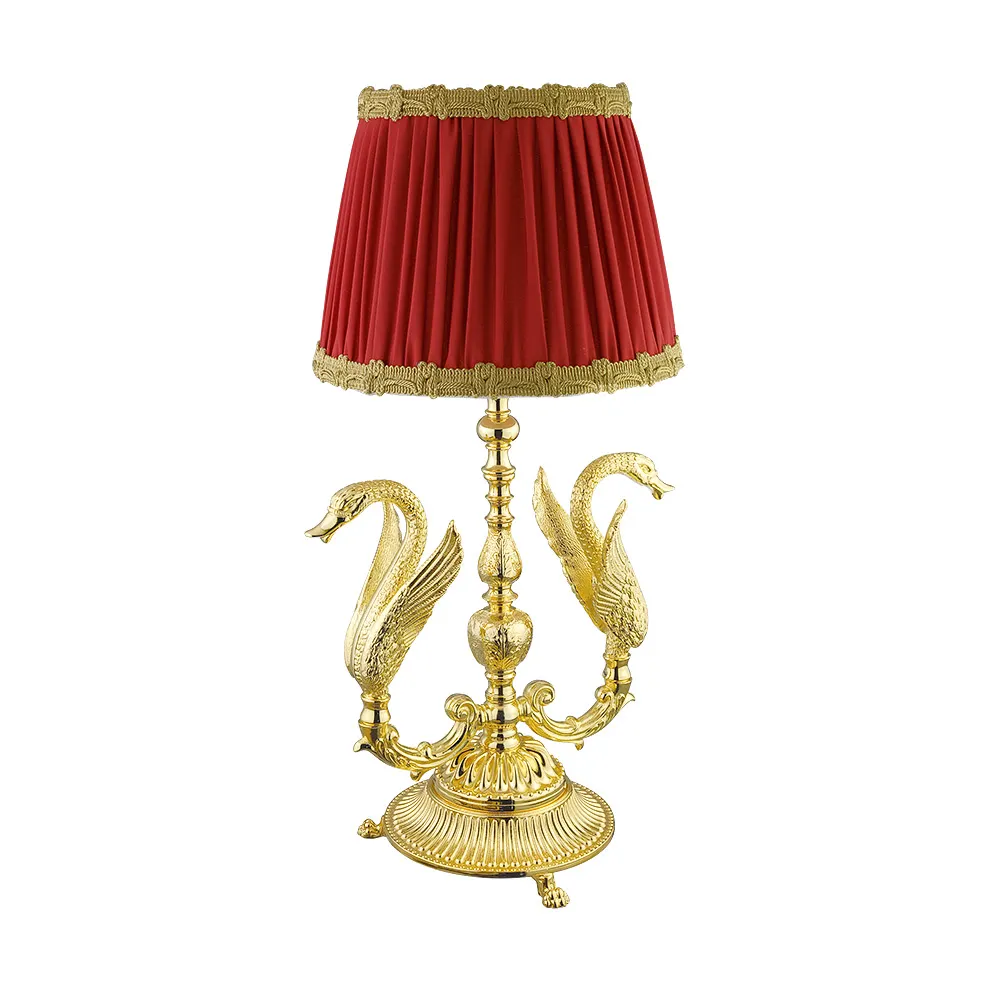 Настольная лампа коллекции LUXOR бренда MIGLIORE станет роскошным украшением вашего интерьера. Свет, проникающий сквозь красную ткань на плафоне, будет создавать неповторимую атмосферу в вашем доме. Изделие выполнено из высококачественной латуни и имеет гальваническое покрытие золотом 24 карата. Внимание: золотое покрытие очень деликатное и для ухода рекомендуется использовать чистящее средство бренда MIGLIORE для смесителей и аксессуаров с деликатными покрытиями бронза, золото, медь и протирать мягкой ветошью.