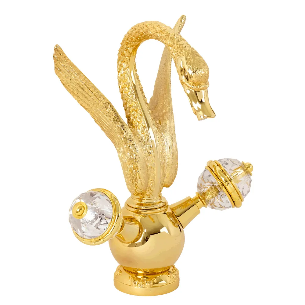 LUXOR См-ль д/раковины, лебедь МАЛЫЙ h29 см, ручки CRYSTAL, золото арт-27191