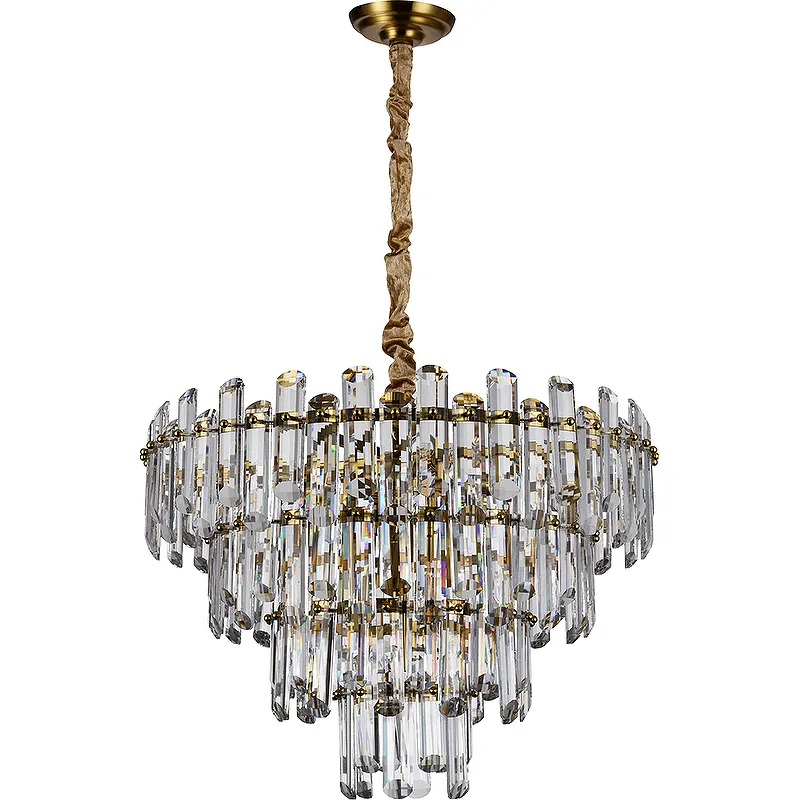 - Классический дизайн: Подвесная люстра из прозрачного хрусталя и латуни идеально дополняет классические интерьеры.