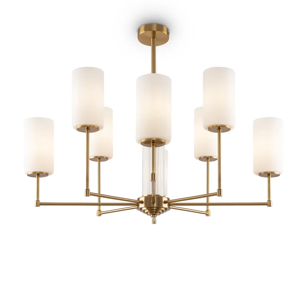 Выразительную силу простых художественных решений демонстрирует серия Agnes: дизайнеры отказались от стандартного одноуровневого расположения плафонов, разместив их на разной высоте. Всего одна деталь меняет настроение модели, а элегантная классика обретает современные черты. Арматура светильника выполнена из металла и окрашена в цвет латуни и хрома. Лаконичный силуэт дополняется стеклянным декором центрального стержня: рельефная фактура оттеняет гладкую поверхность рожков. Белые плафоны из полупрозрачного стекла мягко приглушают световой поток, делая его уютным и обволакивающим. Оригинальное дизайнерское решение позволяет использовать модель как в классических, так и в современных интерьерах с настроением ар-деко, строгой неоклассики или бунтарской эклектики. Люстры на 6 и 8 плафонов и бра – готовый ансамбль для комплексного освещения пространства в единой стилистике.
