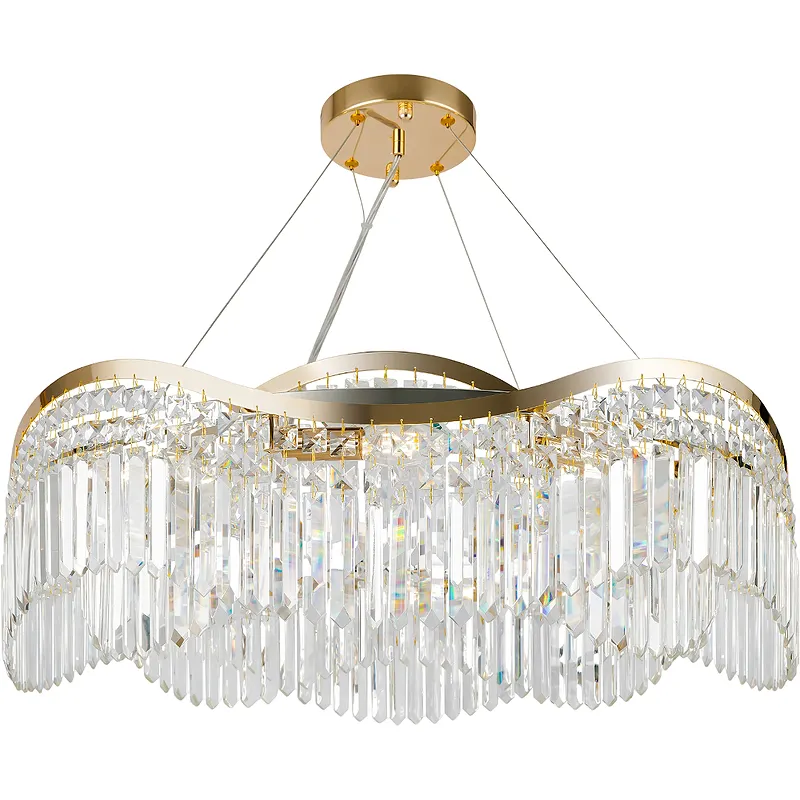 - Классический стиль для гостиной: Люстра выполнена с использованием металла и хрусталя, что делает её идеальной для классических интерьеров.