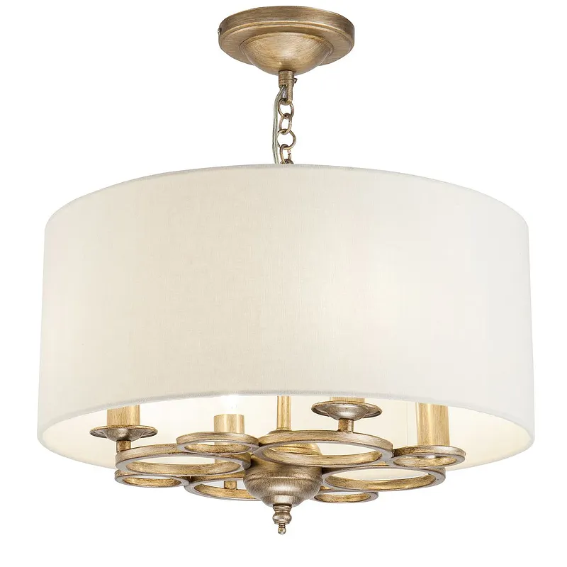 - Элегантный дизайн: Люстра выполнена в классическом стиле с использованием металла и текстиля, что придаёт ей утончённый вид.