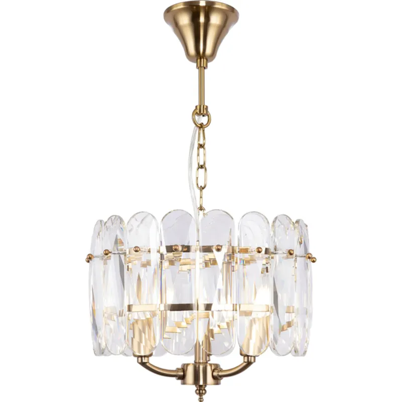 - Элегантный дизайн: Люстра в классическом стиле сочетает прозрачное стекло и латунь, что делает её универсальной для любого интерьера.