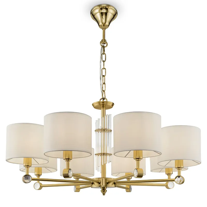 Люстра Maytoni Neoclassic Alloro MOD088PL-08BS из Германии — идеальное решение для интерьера в классическом стиле. Подвесная люстра с 8 лампами и цоколем E14 обеспечивает равномерное освещение в спальне или гостиной. Изящное сочетание белой латуни и текстиля делает данную люстру выразительным акцентом в любом помещении.