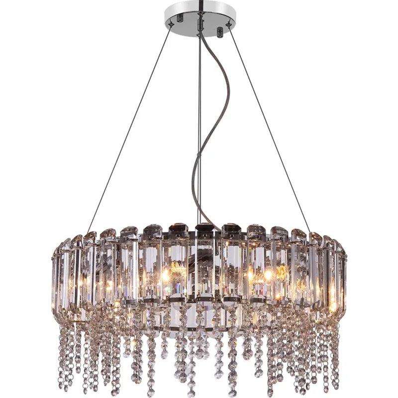 - Элегантный дизайн: Прозрачный и хромированный цвет арматуры и плафонов создают стильный акцент в интерьере.