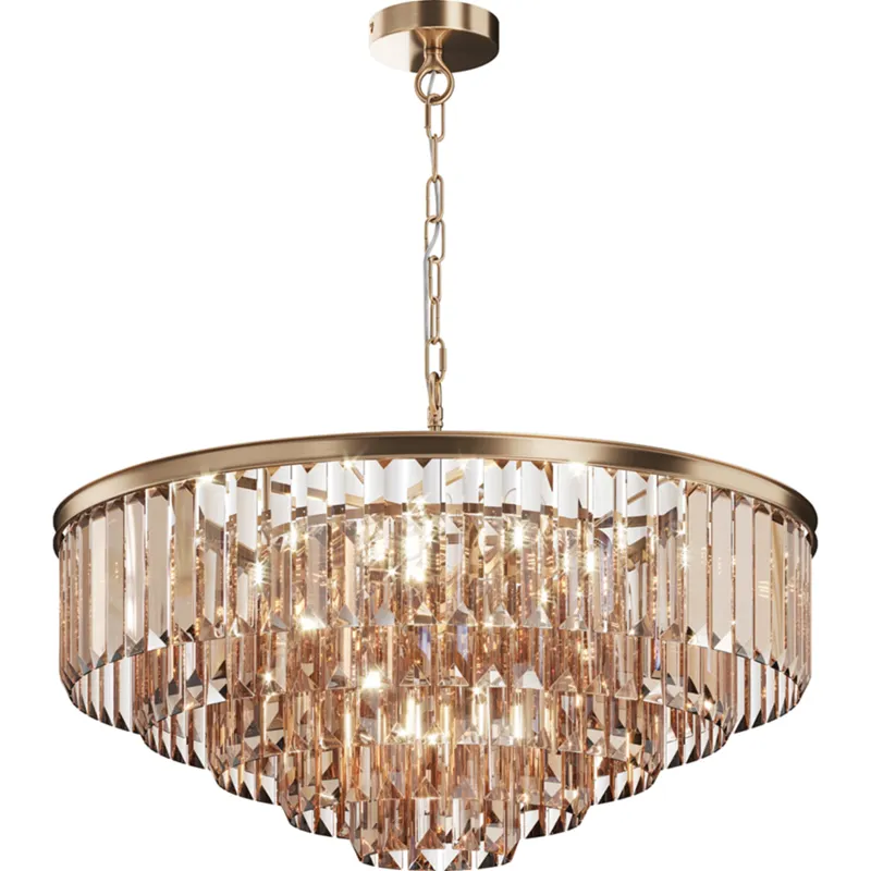 - Классическая эстетика: Металлическая арматура и хрустальные элементы в цвете золота и прозрачного хрусталя придают люстре элегантный вид.