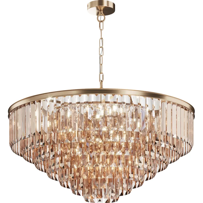 - Стильный дизайн: Классическая подвесная люстра с золотой арматурой и прозрачными стеклянными плафонами.