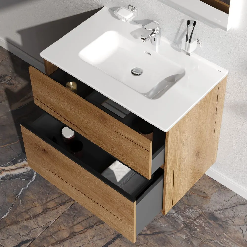 Sense, База под раковину, универсальная, 80 см, 2 ящика, цвет: дерево арт-M7BFUX0802OF