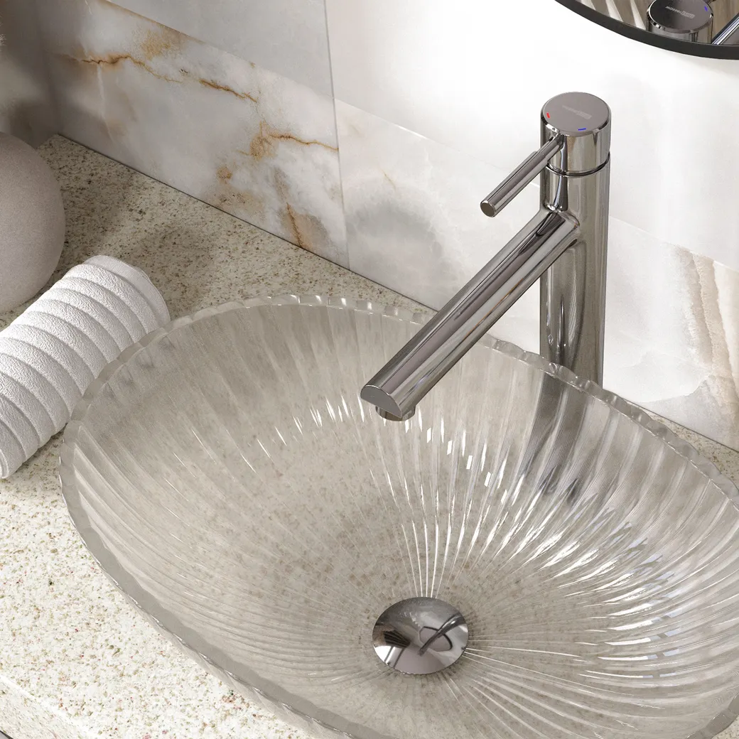 - Универсальный монтаж: Возможность установки на столешницу или раковину делает данный смеситель для умывальника подходящим для различных типов ванных комнат.