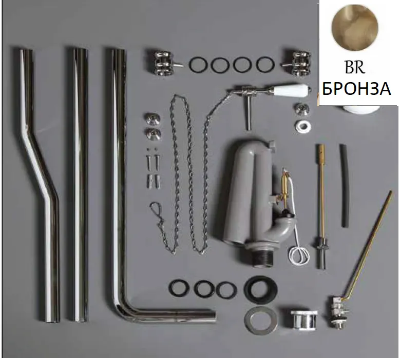 Механизм слива SIMAS с латунной трубой для высокого бачка с ручкой смыва на цепочке арт-R01Br