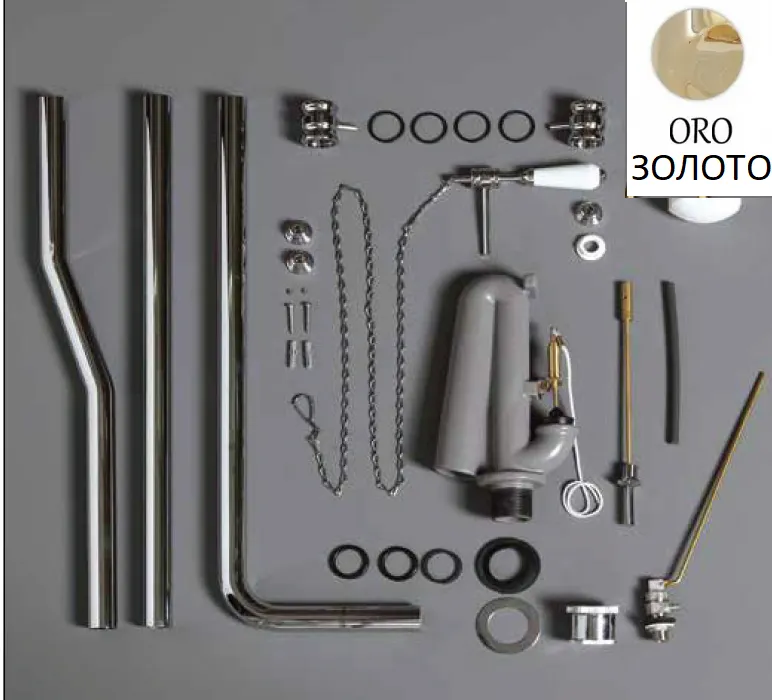 Механизм слива SIMAS с латунной трубой для высокого бачка с ручкой смыва на цепочке арт-R01ORO