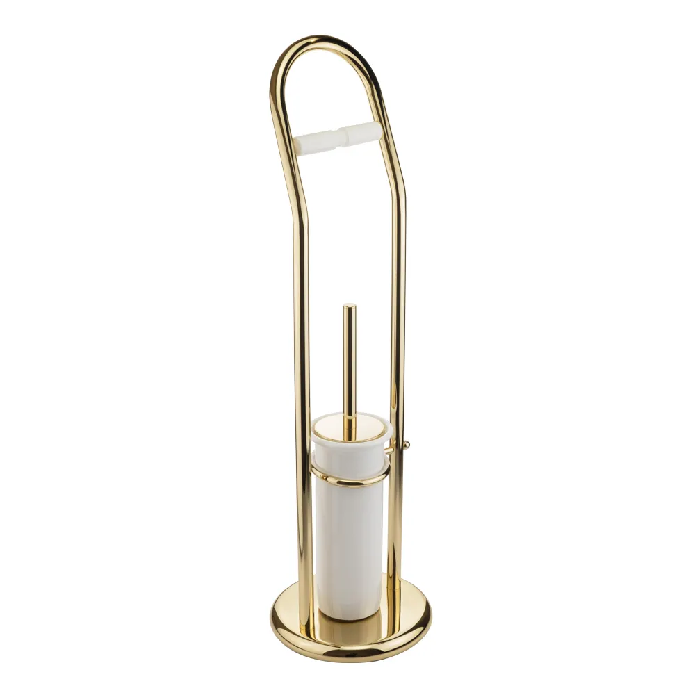 Стойка для унитаза серии MIRELLA бренда MIGLIORE - это многофункциональный аксессуар для ванной комнаты. На стойке расположены бумагодержатель и керамический ерш, который легко мыть. Изделие выполнено из высококачественной латуни и имеет гальваническое покрытие золотом 24 карата. Внимание: золотое покрытие очень деликатное и для ухода рекомендуется использовать чистящее средство бренда MIGLIORE для смесителей и аксессуаров с деликатными покрытиями бронза, золото, медь и протирать мягкой ветошью.